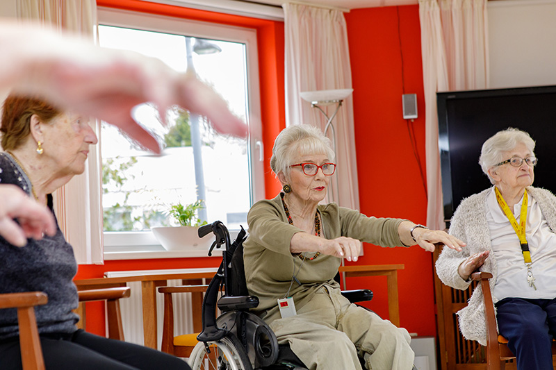 Neben Einzelbetreuungen können unsere Bewohnerinnen und Bewohner auch Gemeinschaftsangebote wahrnehmen, wie Gedächtnistraining, Gymnastik, Kochkurse, Literatur- und Zeitungsgruppen, Kunstforum, Bingo, Ausflüge, Kosmetikrunden oder Einkaufstouren.