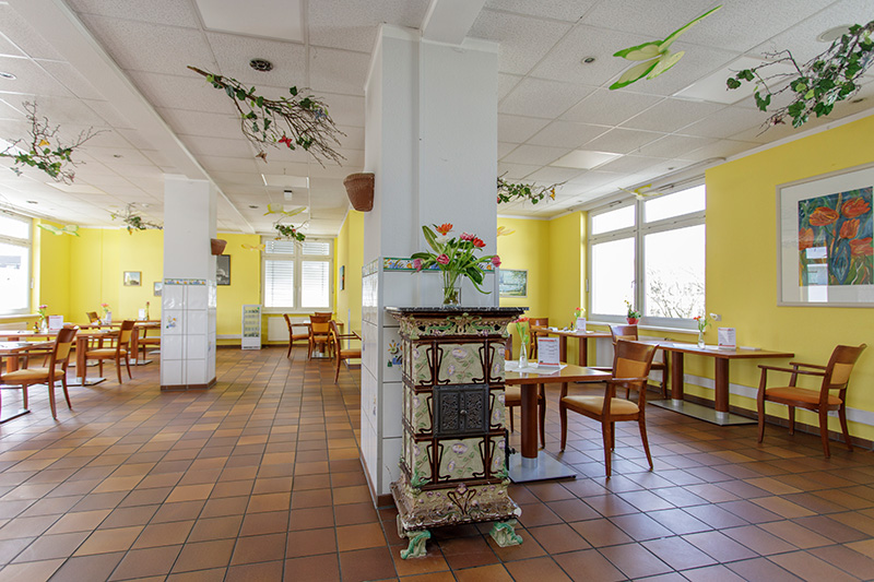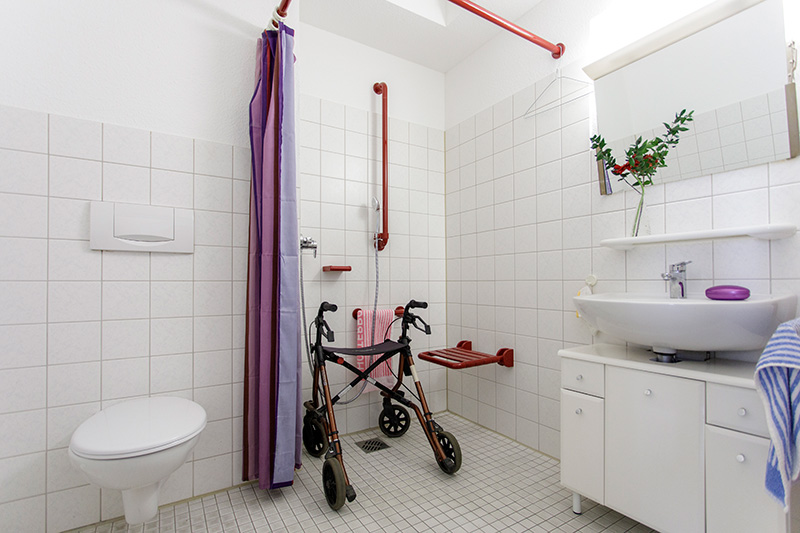 Unsere Bewohnerinnen und Bewohner können ihren 27 qm großen Raum – abgesehen von Pflegebett und Nachttisch – mit eigenen Möbeln und persönlichen Gegenständen einrichten. Auf Wunsch werden Kleiderschrank, Tisch und Stühle auch gestellt.