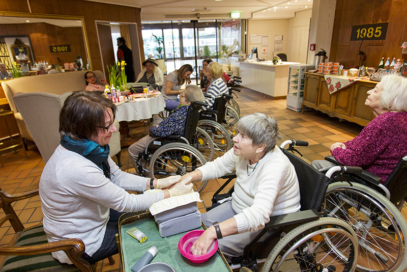 Jeden Tag bieten unsere Mitarbeitenden gemeinsam mit Ehrenamtlichen lebendige und vielfältige Aktivitäten – ob als Einzelbetreuung oder Gemeinschaftsangebot, wie Gedächtnistraining, Gymnastik, Kochkurse, Literatur- oder Gartengruppe, Werken, Maniküre oder eine Kegelrunde.
