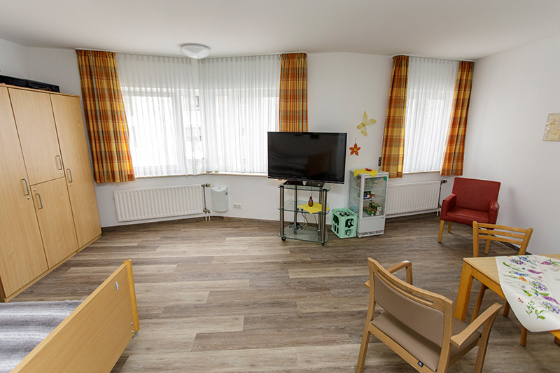 Im Haus Andreas können unsere Bewohnerinnen und Bewohner ihren Raum neben der funktionalen Ausstattung mit Pflegebett und Nachtisch (Kleiderschrank, Tisch und Stühle optional) – mit eigenen Möbeln und persönlichen Gegenständen individuell einrichten.