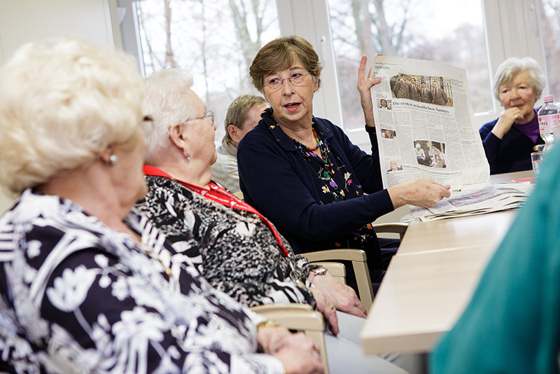 Neben Einzelbetreuungen können unsere Bewohnerinnen und Bewohner auch Gemeinschaftsangebote wahrnehmen, wie Gedächtnistraining, Gymnastik, Kochkurse, Literatur- und Zeitungsgruppen, Kunstforum, Bingo, Ausflüge und Kosmetikrunden.